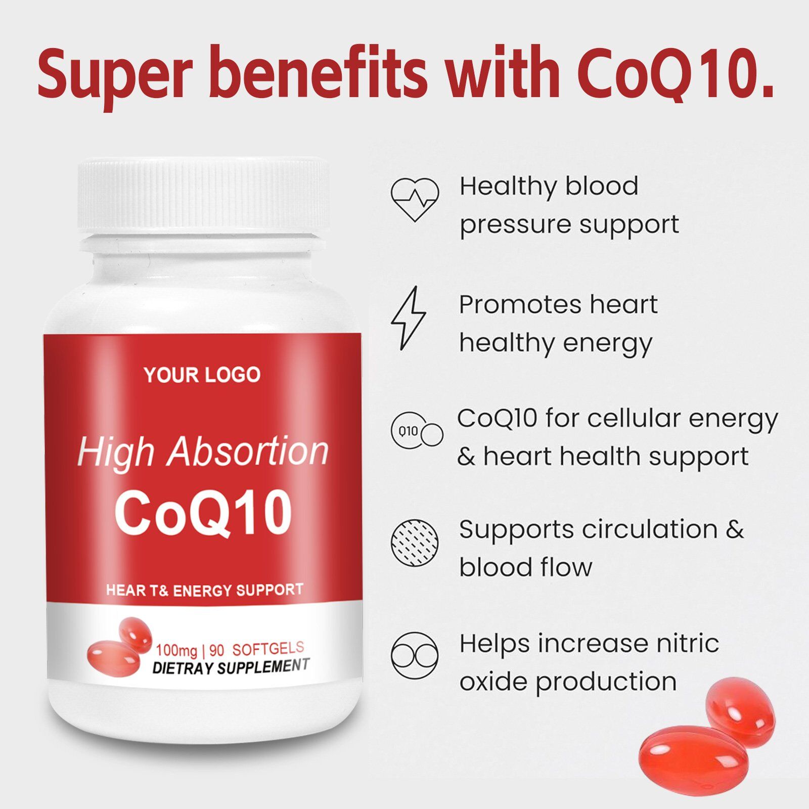 Boost heart health and energy naturally with CoQ10 100 mg Softgels. Antioxidant support for cellular function and vitality. Shop private label now.